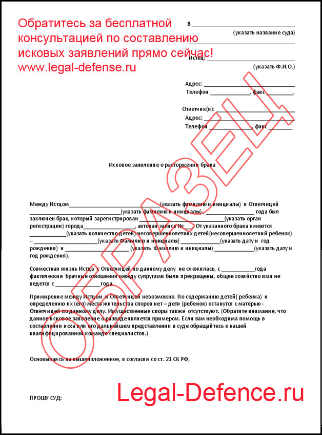 Применительно к рассматриваемой теме исковым требованием является расторжение брака.
