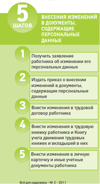 Внесение изменений в документацию организации в случае перемены фамилии работником