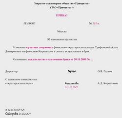 Образец приказа об изменении фамилии